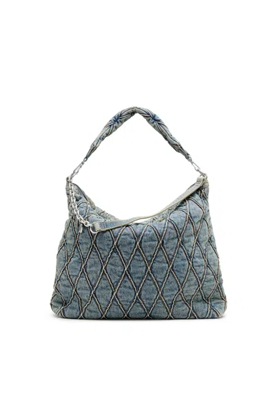 DIESEL Charm-d-large Hobo In Argyle Quilted Denim In Blue