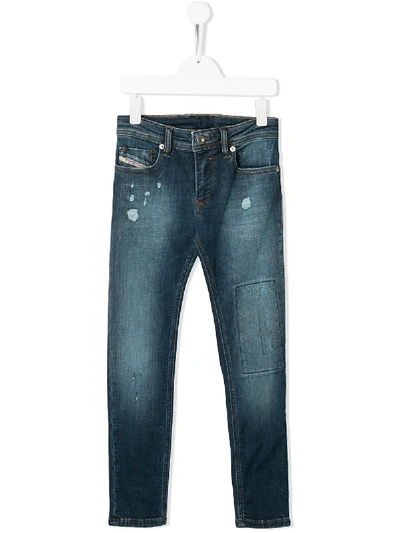 Pioneers of denim and change, Diesel has evolved into a premium casual wear brand offering a wide ranging edit with a signature streetwear aesthetic still at its core. Self expression and individuality continue to define the brand with trademark ‘Only The Brave’ prints appearing on slogan tees, representing founder, Renzo Rosso’s vision. Incorporate Diesel’s DNA into your wardrobe with these blue cotton distressed jeans featuring a waistband with belt loops, a button and zip fly, a straight leg, a regular length, a stonewashed effect and a distressed finish.
