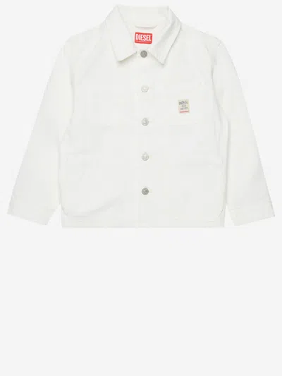 DIESEL Kids' Jstack Denim Jacket With Applied Pockets In White