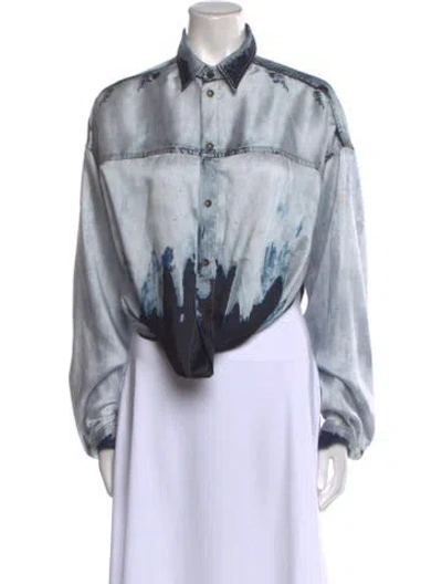 Diesel Button-Up Top Blue & White Printed Long Sleeve with Collar Button Closure at Front Fit: Tops by Diesel typically fit true to size. | Diesel Printed Long Sleeve Button-Up Top in Blue/White, Women's S