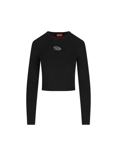 DIESEL Ribbed Viscose Top With Oval D In Black