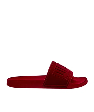 DIESEL Sa-mayemi-pool Slides With Velvety Flocking In Red