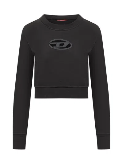 - Black Diesel cotton cropped sweatshirt for woman - Round neck - Long sleeves - Elastic ribbed trims - Front tone on tone embroidered logo with cut-out detailsModel's height is 179 cm and she wears a size S