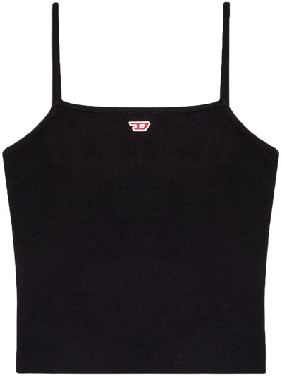 logo-patch sleeveless vest top from DIESEL featuring jet black, cotton blend, logo patch to the front, thin shoulder straps, sleeveless and straight hem.