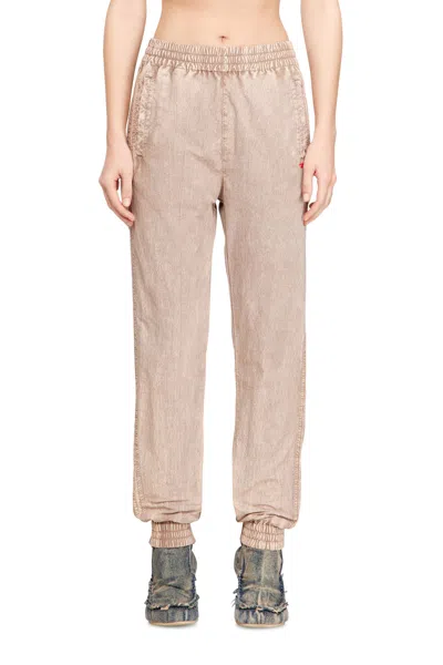 Sports meets a grungy acid-wash fade in these women's joggers. Cut from recycled-nylon Taslan with a treated finish, they have a hidden drawstring at the waist and a relaxed fit tempered by elasticated ankles. Side bands - five-stripe strong - boost the athletic feel, while the red silicone D signals pure Diesel DNA. Relaxed fit; Elasticated waist with inner drawstring; Side pockets with hidden snap buttons; Elasticated cuffs