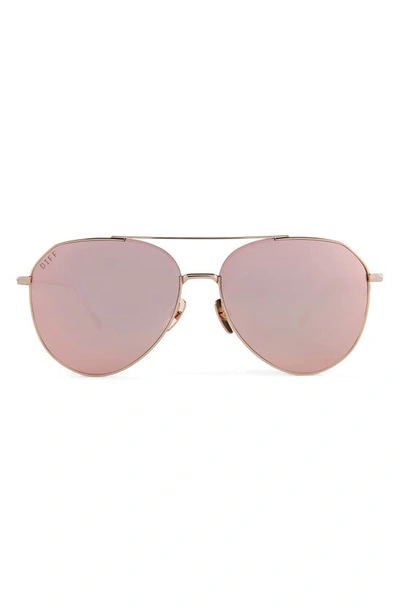 DIFF Dash 61mm Mirrored Aviator Sunglasses In Peach Mirror