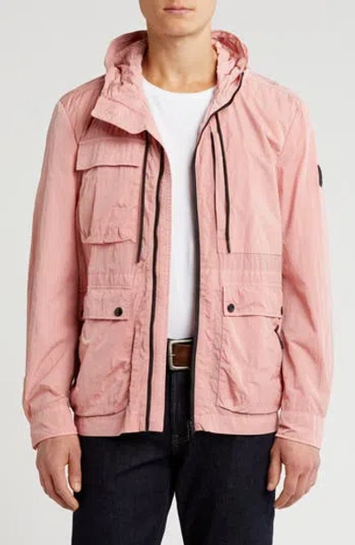A slim fit updates the look of an essential field jacket featuring plenty of pockets and a drawstring hood. Two-way front-zip closure with chin guard Drawstring hood Adjustable snap cuffs Front snap-flap patch pockets; front zip pockets Lined 100% polyamide Dry clean Imported