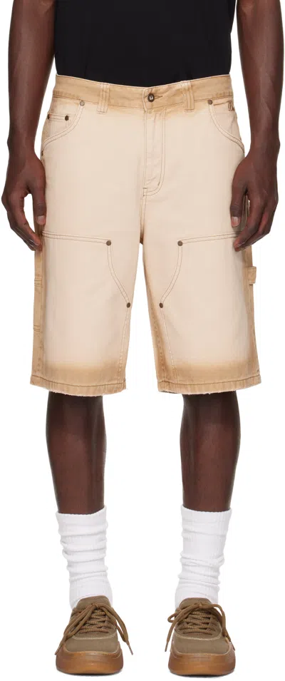 Non-stretch denim shorts. · Rivets and fading throughout · Belt loops · Five-pocket styling · Zip fly · Embroidered logo at front · Reinforced panel at front legs · Subtle distressing at cuffs · Hammer loop at outseam · Embroidered logo patch at back waistband · Patch pocket at back leg · Logo-engraved antiqued bronze-tone hardware Supplier color: Bronze