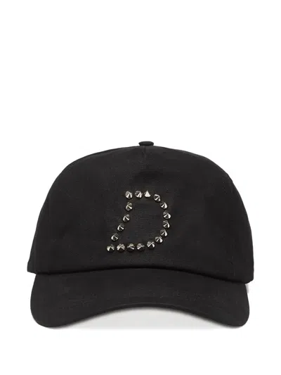black waxed finish stud-embellished D motif curved peak adjustable leather strap silver-tone hardware