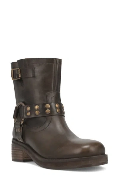 Ground casual ensembles in moto-inspired edge with this harness-wrapped bootie. 2" heel 7" shaft Side zip closure Cushioned footbed Leather upper/textile lining/synthetic sole Imported
