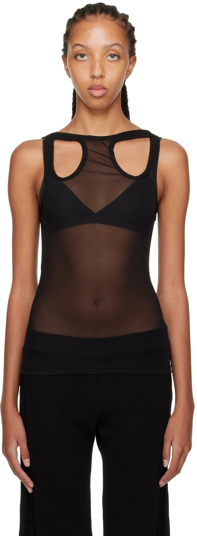 Sheer recycled polyester jersey tank top. · Cut out at front and back · Racer back Supplier color: Black