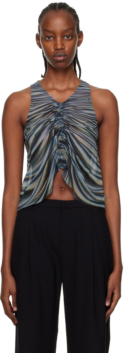 DION LEE Blue Shirred Drape Tank Top In Hyperreal