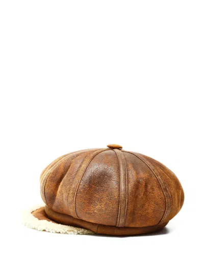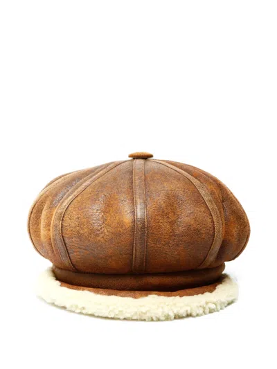 brown top button flat peak band detail shearling trim Condition: GOOD. This previously owned and used item is in good condition with minimal signs of use. This may include fading of material or plating and scratches.