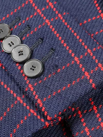 navy and red check pattern button fastening hook and eye closure cuffs Condition: EXCELLENT. This previously owned item is in near-perfect condition with no signs of damage or use.