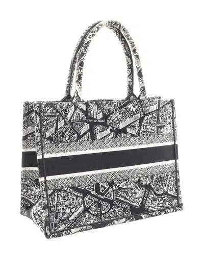 Pre-owned 2023 Medium Canvas Embroidered Plan De Paris Book Tote Bag In Black