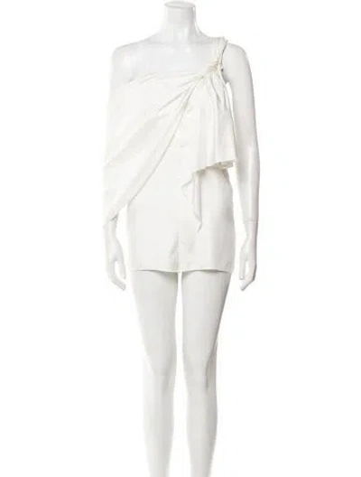Christian Dior Romper White Bee Accent Pleated Accents Sleeveless with Asymmetrical Concealed Zip Closure at Side Fit: Jumpsuits and Rompers by Christian Dior typically fit true to size. | Christian Dior Asymmetrical Romper in White, Women's US6, FR38 | M