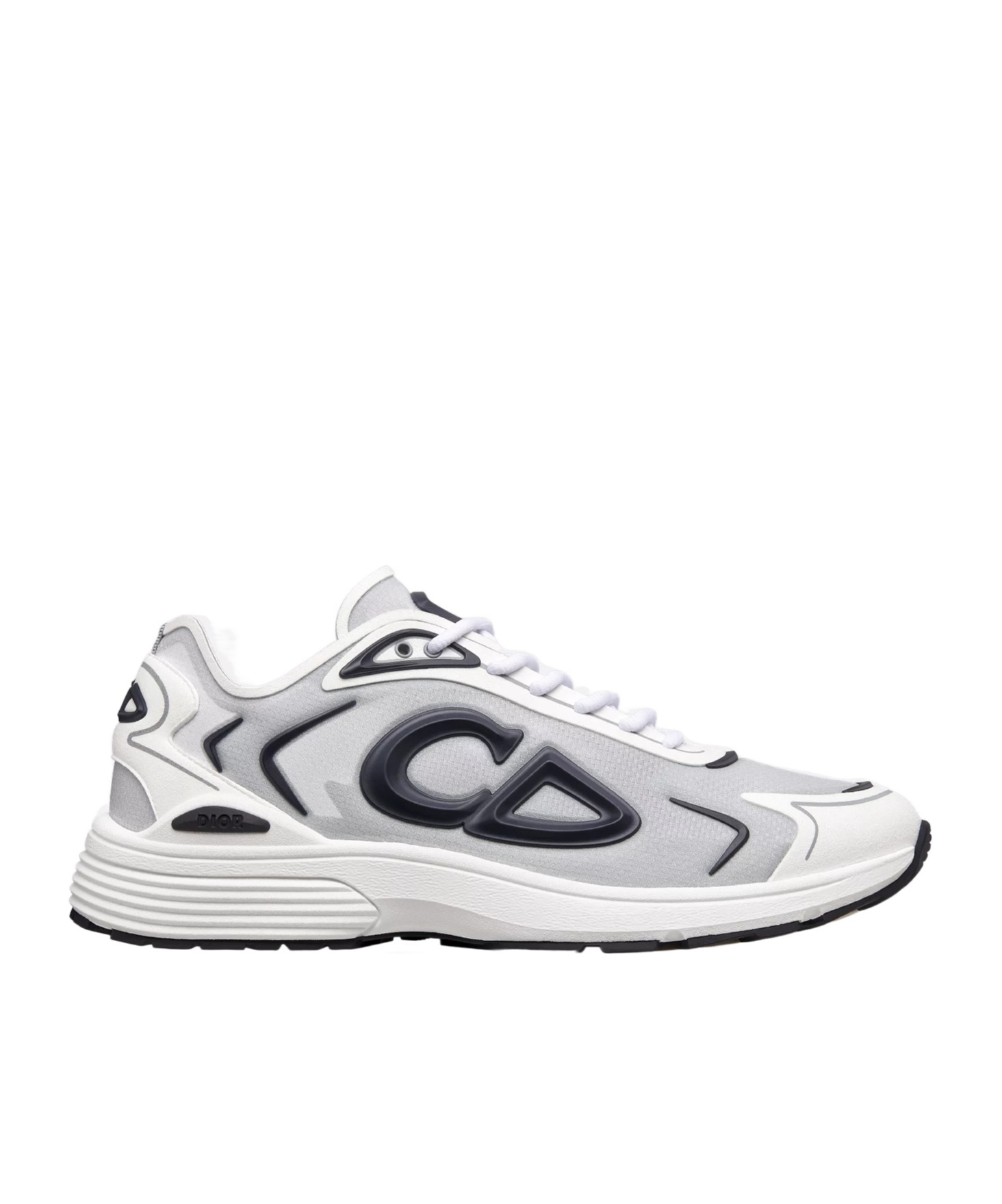 New for Spring 2026, the B30 Countdown Tech sneaker is distinguished by its sporty silhouette combining couture codes with technical performance. Directly inspired by the modern running world, the ultralightweight sneaker is crafted in white and gray N3O nylon, a multilayer semi-transparent and ultra-breathable technical fabric. It is enhanced by navy blue injected rubber inserts, as well as a revisited CD30 signature in a graphic style. It also features rubber Dior B30 and CD30 signatures on the tongue and back. A sculpted sole in a blend of flexible rubber and foam ensures optimal comfort and is embellished with various hallmark details. The B30 Countdown Tech sneaker will complete both sportswear and casual outfits.