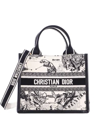 Pre-owned Book With Strap Embroidered Canvas Small Tote Bag In Black