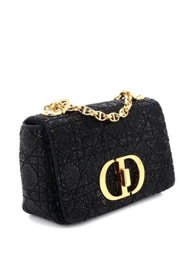 Pre-owned Caro Bag Beaded Cannage Quilt Satin Small Shoulder Bag In Black