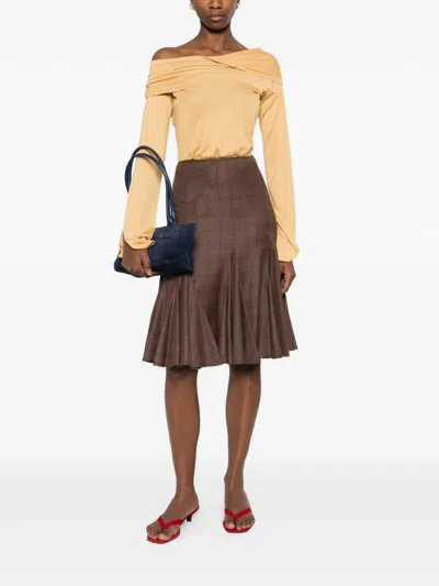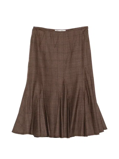 brown check pattern flare panelling a-line shape Condition: EXCELLENT. This previously owned item is in near-perfect condition with no signs of damage or use.