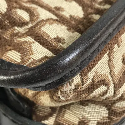 Pre-owned Christian Beige Brown Leather Canvas Shoulder Bag () In Multi