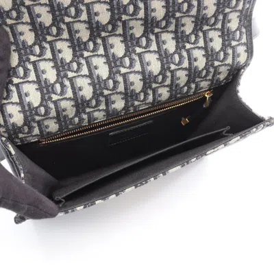 Pre-owned Christian Beige Navy Canvas Leather Shoulder Bag () In Multi