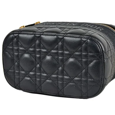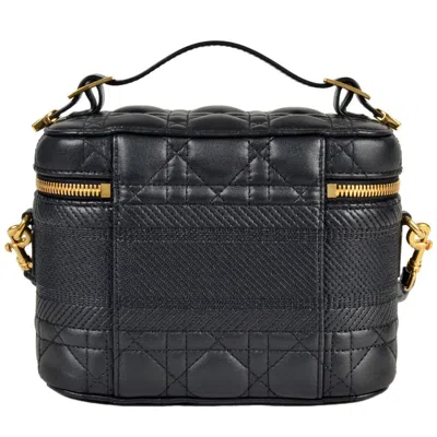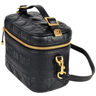 Pre-owned Christian Black Leather Canvas Shoulder Bag Vanity Bag ()