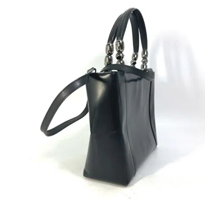 Pre-owned Christian Black Leather Handbag Shoulder Bag Tote Bag ()