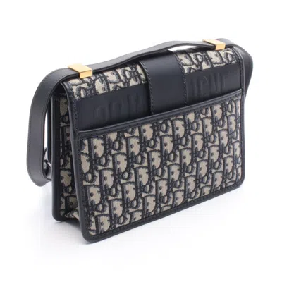 Pre-owned Christian Gray Navy Canvas Leather Shoulder Bag () In Multi