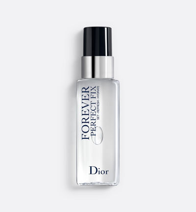 Dior Forever Perfect Fix is the 1st Dior triple-action face mist: it has lasting wear, sets makeup and delivers instant hydration, all in a single step. The micro-diffusion of the face mist creates a sheer veil of freshness on the skin and prolongs makeup hold without altering its color. Face makeup remains fresh and flawless, without marking facial features or migrating into wrinkles and fine lines. Concentrated in water and enriched with wild pansy flower, this face mist provides the skin with hydration and beneficial freshness.