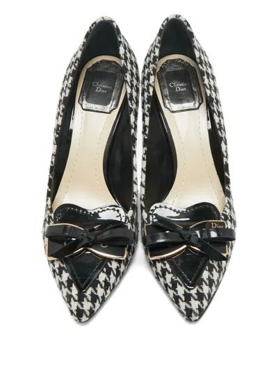 black and white houndstooth pattern pointed toe bow detail patent leather detail stiletto heel Condition: GOOD. This previously owned and used item is in good condition with minimal signs of use. This may include fading of material or plating and scratches.