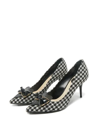 Pre-owned Houndstooth Bow Pumps In White