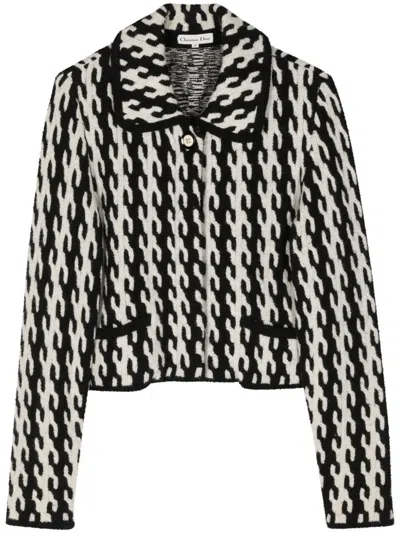 black/white wool houndstooth pattern knitted construction classic collar front button fastening two front patch pockets long sleeves straight hem Condition: GOOD. This previously owned and used item is in good condition with minimal signs of use. This may include fading of material or plating and scratches. Purchasing this item continues its narrative and reduces the environmental impact by avoiding the use of new resources needed to make the product from scratch, such as water, materials and electricity, and avoiding additional manufacturing impact. Learn more about what makes a product Conscious on our Conscious Criteria page