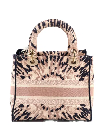 Pre-owned Lady D-lite Bag Embroidered Canvas Medium Satchel In Blue