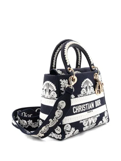 Pre-owned Lady D-lite Bag Embroidered Canvas Medium Satchel In Blue