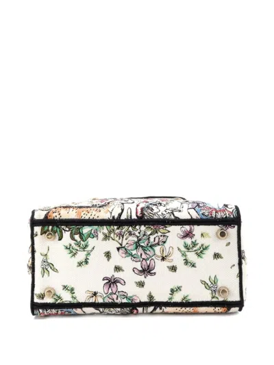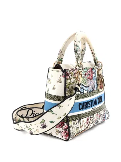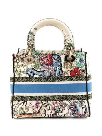 Pre-owned Lady D-lite Bag Embroidered Canvas Medium Satchel In Multi