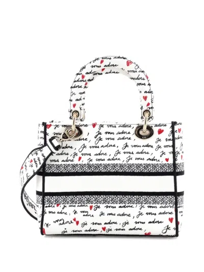 Pre-owned Lady D-lite Bag Embroidered Canvas Medium Satchel In Multi