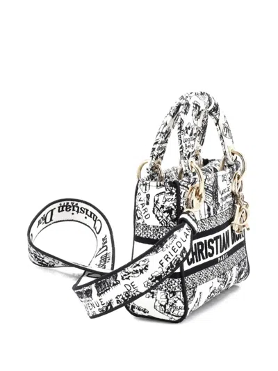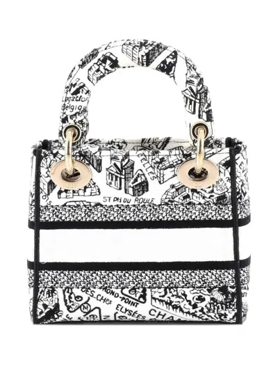Pre-owned Lady D-lite Bag Embroidered Canvas Mini Satchel In Black