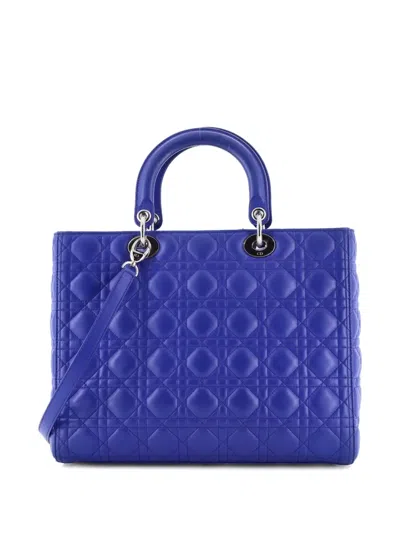 Pre-owned Lady Bag Cannage Quilt Lambskin Large Tote Bag In Blue
