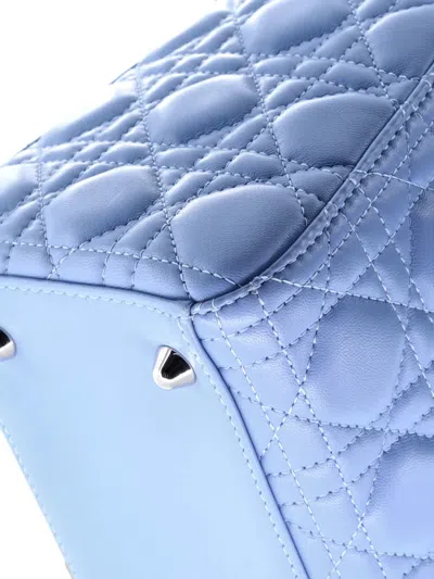 Pre-owned Lady Bag Cannage Quilt Lambskin Large Tote Bag In Blue