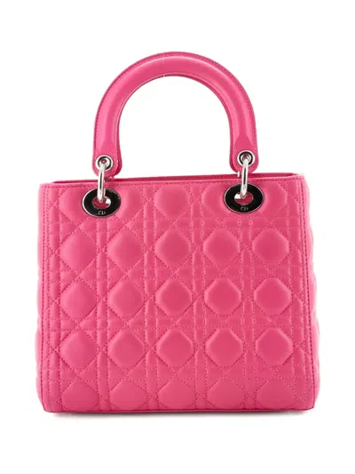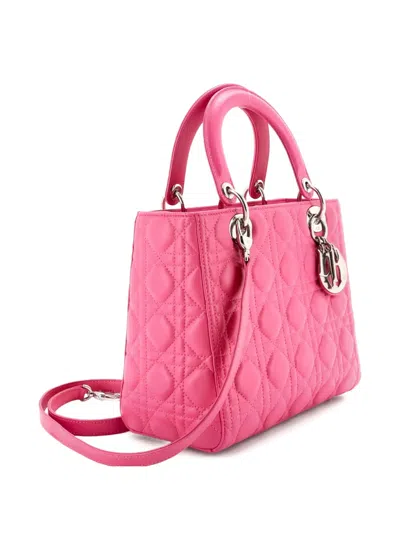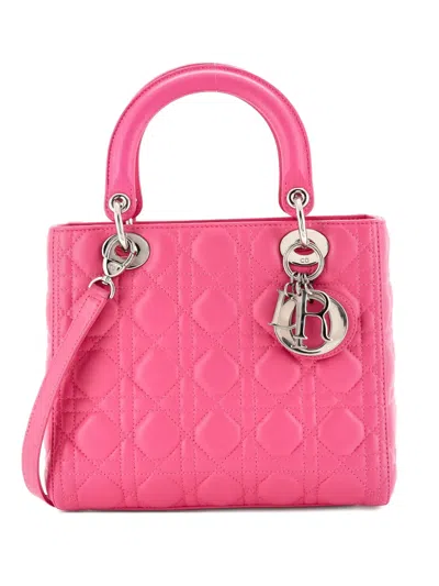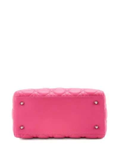 Pre-owned Lady Bag Cannage Quilt Lambskin Medium Satchel In Pink