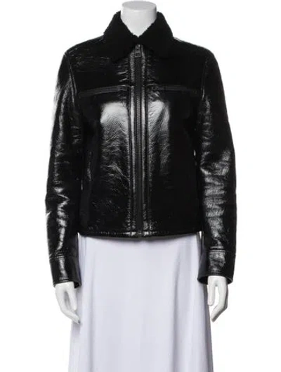 Christian Dior Leather Biker Jacket Black Bee Accent Pointed Collar Slit Pockets & Zip Closure Fit: Jackets by Christian Dior typically fit true to size. | Christian Dior Leather Biker Jacket in Black, Women's M