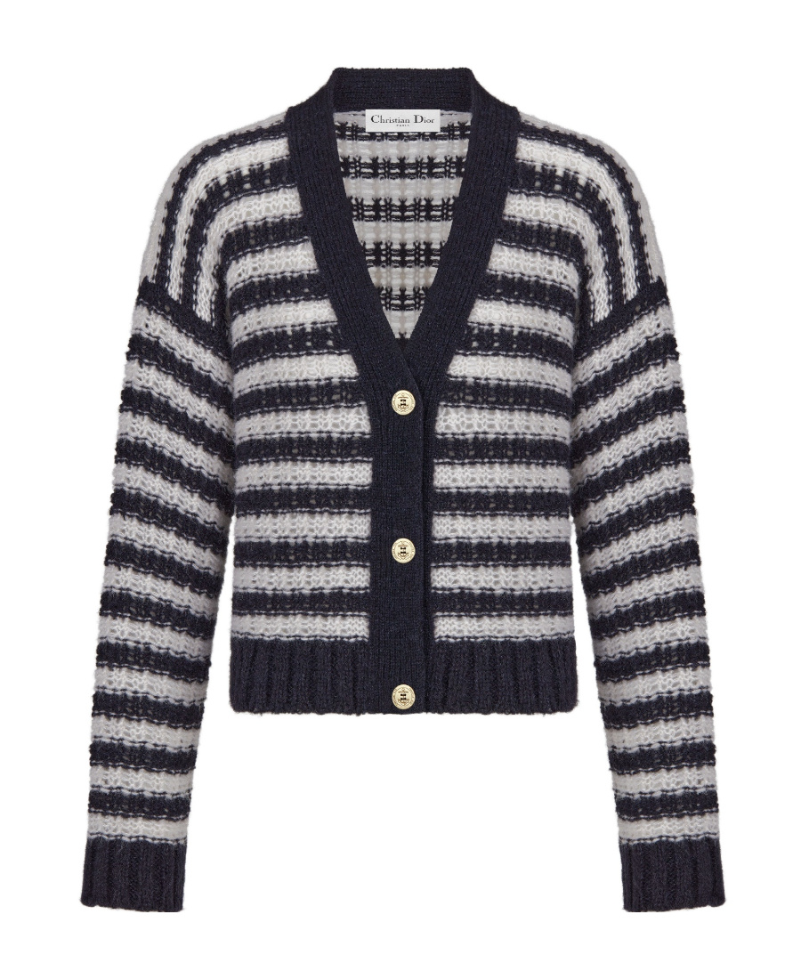 Navy blue, white MARINI coat RE cardigan, front buttons, decorative buttons with anchors.