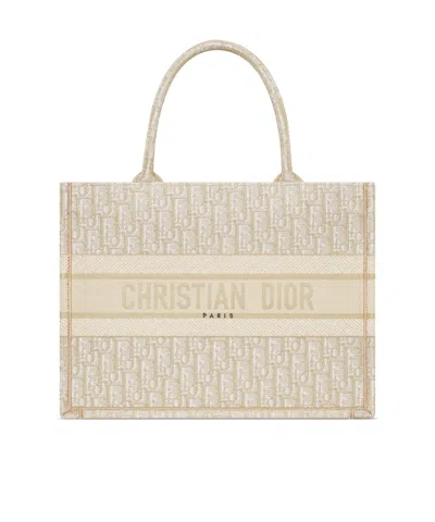 The Dior Book Tote has become a staple of the Dior aesthetic. Designed to hold all the daily essentials, the style is fully embroidered with the iconic gold-tone Dior Oblique motif and is adorned with the Christian Dior Paris signature on the front. The medium tote exemplifies the House's signature savoir-faire and may be carried by hand or worn over the shoulder.