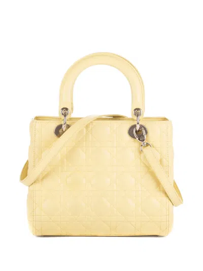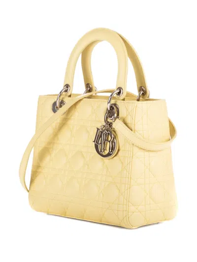Pre-owned Medium Lady-d Quilted Tote Bag In Yellow