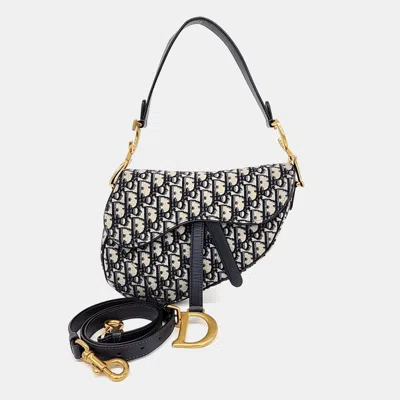 Pre-owned Navy Blue Canvas Saddle Strapback