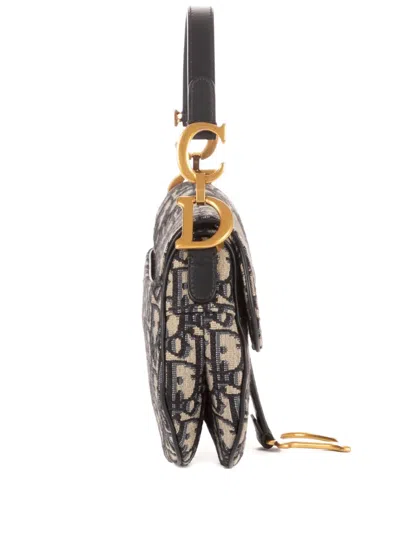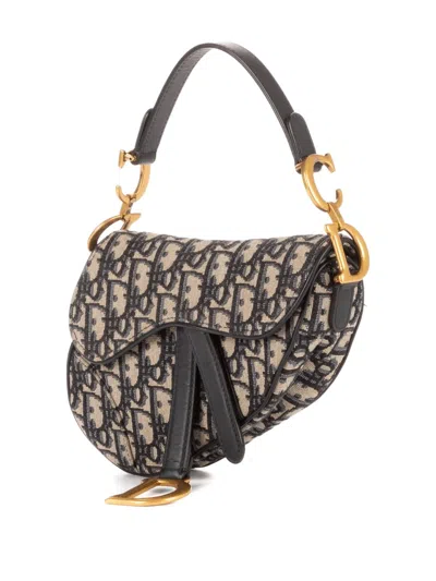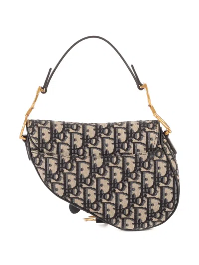 Pre-owned Oblique-canvas Saddle Bag In Neutral