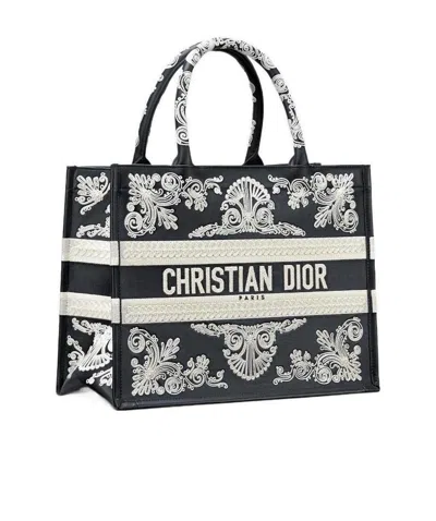 DIOR Pattern Embroidered Handbag In Black