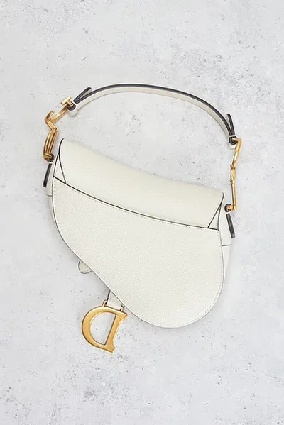 dior Dior Saddle Bag in White - White. Size all. White calfskin leather with gold-tone hardware. Made in Italy. Foldover flap closure. One main compartment. 1 exterior flat pocket. Original care booklet, authenticity card, and brand dustbag included. Measures approx 8 W x 6 H x 1.5 D Shoulder strap with a 5 drop. Excellent. No significant wear or flaws. Original brand box, and hang tag not included. FNEF-WY7101. 12376710. About the designer:
