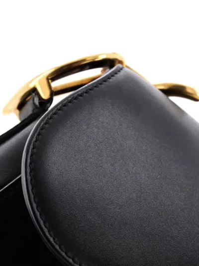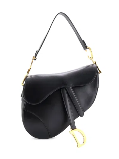 Pre-owned Saddle Handbag Leather Medium Shoulder Bag In Black